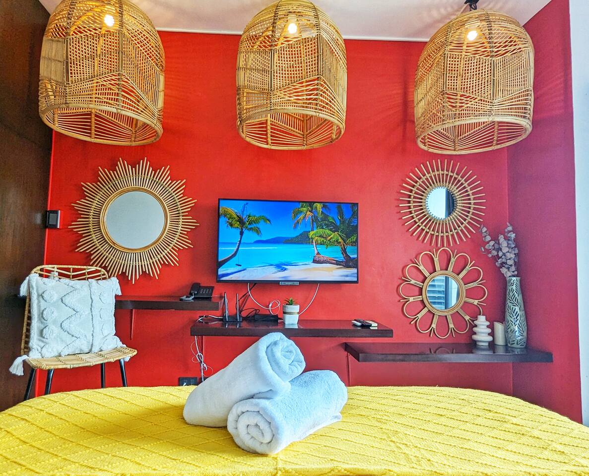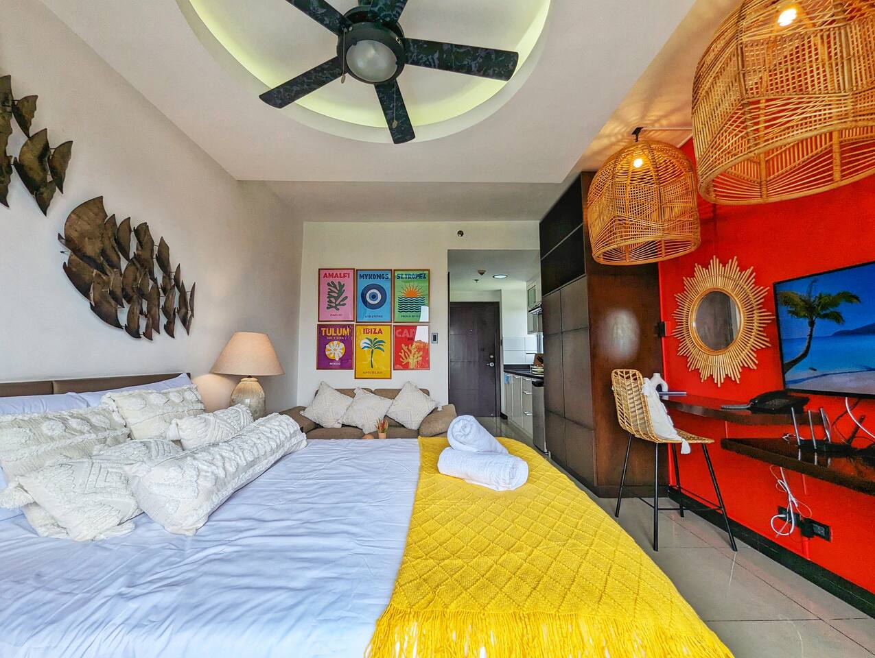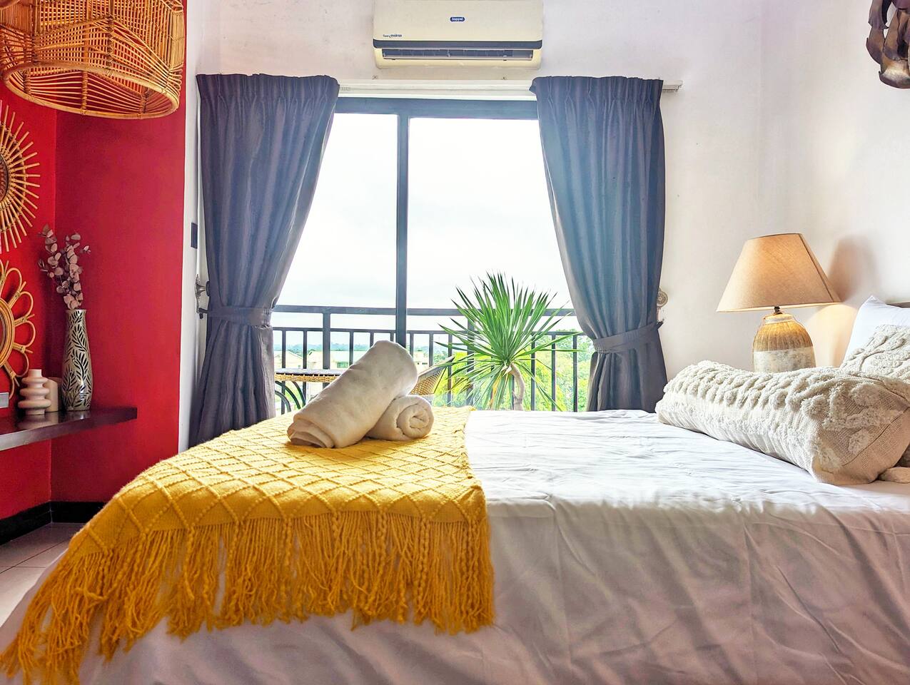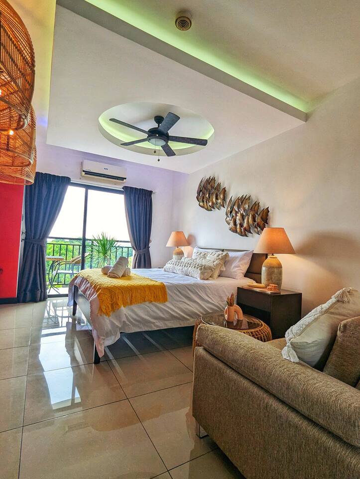 π΄β¨ Discover our Chic & Beach Boho Studio! Kick back and soak up those chill vibes right in the heart of the city. Perfect for both leisure and company stays, this cozy studio blends earthy tones and coastal accents, offering you a peaceful escape from the hustle and bustleβall at an affordable price. ποΈ Studio Layout: Chill out in our boho-inspired living space, featuring a comfy queen bed, sofa, and a 42" HDTV with Netflix and Disney+. π³ Kitchen: Cook meals in our fully equipped kitchen, complete with a stove, fridge, microwave, rice cooker, and coffee maker. πΏ Bathroom: Freshen up in the modern bathroom with a hot shower, bidet, and all the basicsβshampoo, soap, body wash, and fluffy towels. π§΄ A hair dryer is also available for you. β Private Balcony: Start your morning with our complimentary coffee ingredients with our coffee maker on the private balcony. πββοΈ Rooftop Pool: Take a dip in the rooftop infinity pool and enjoy stunning 360Β° views of the city. Location: π Our location is super convenient: 5 minutes to Clark South Exit (SCTEX) 10 minutes to Clark Airport 5 minutes to SM Clark 5 minutes to Korea Town, where youβll find great restaurants and entertainment. House Rules: π To keep things comfortable for all guests, no smoking, pets, or parties are allowed. π Remember, this is a private apartment, not a hotel. Kindly treat it with care and respect. We might not be online 24/7, but weβre here to help and will get back to you as quickly as we can. β³