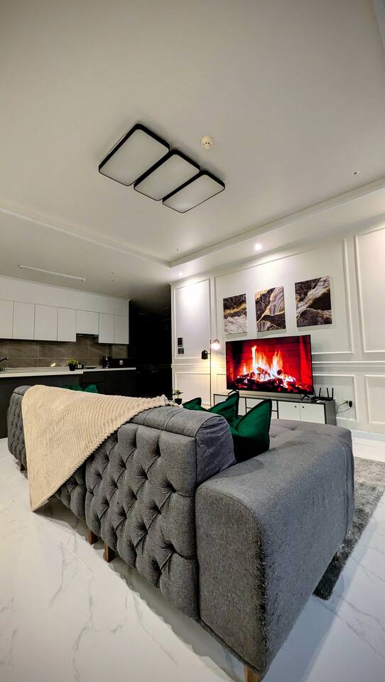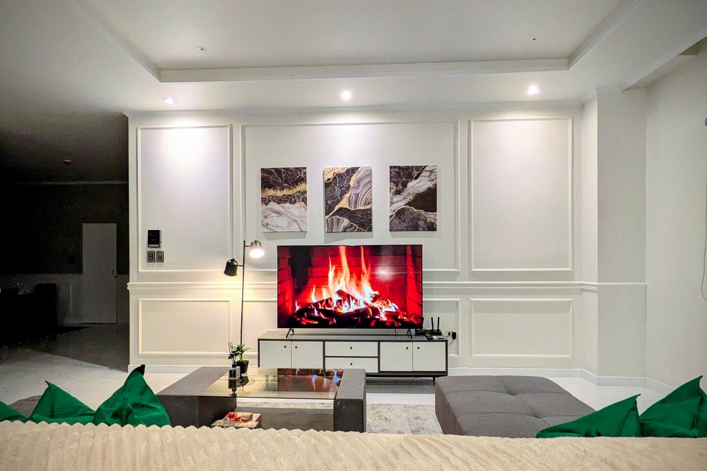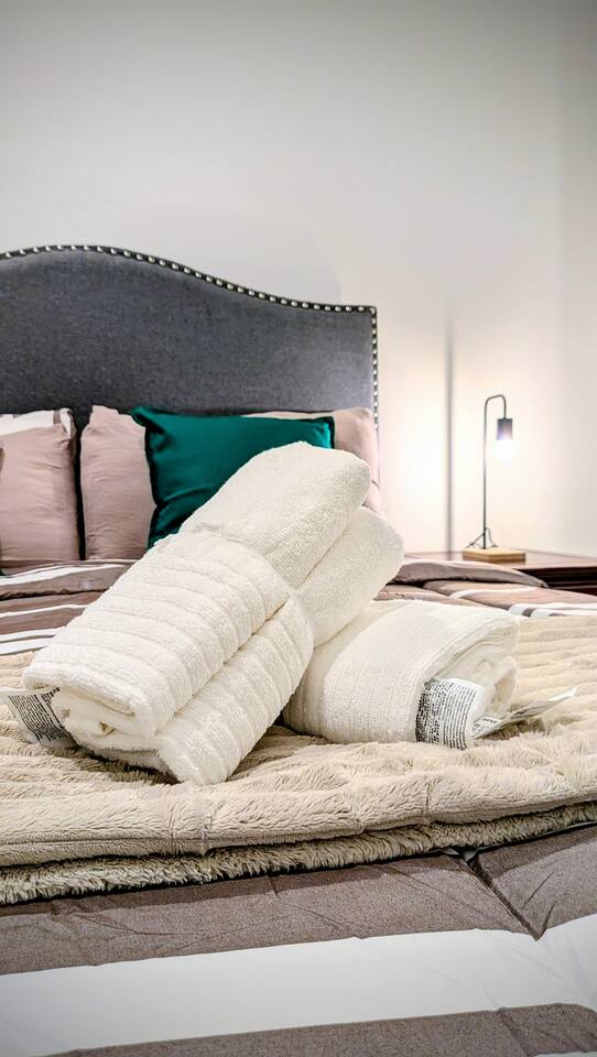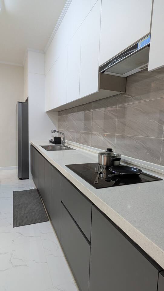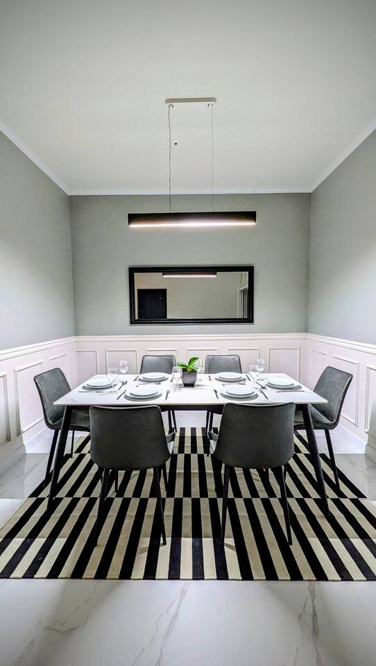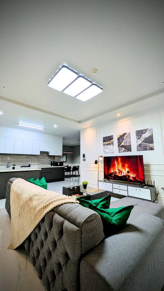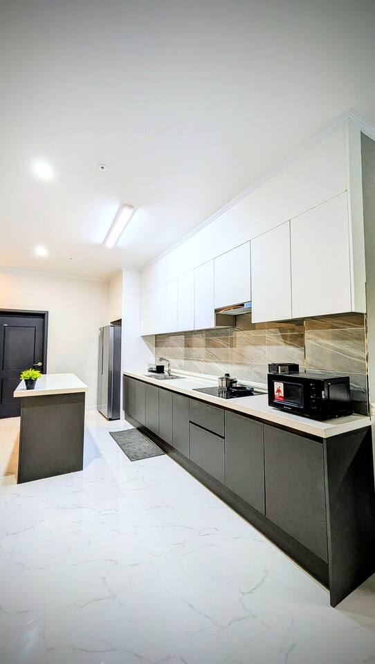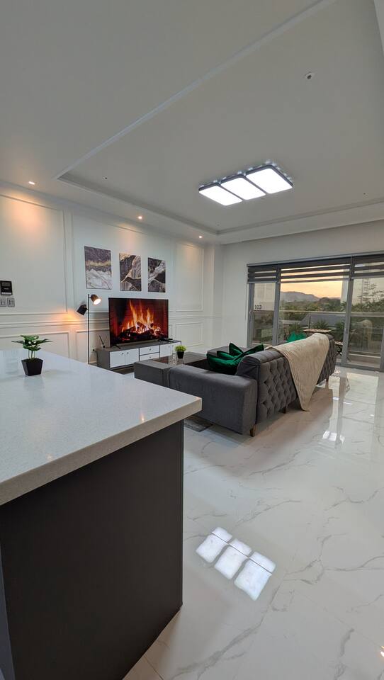 This modern condominium in Clark Freeport Zone offers a spacious and comfortable layout designed for both relaxation and convenience. The living area features high ceilings, comfortable seating, and a large smart TV, creating a bright and inviting space where guests can relax, watch movies, or spend time together. The kitchen and dining area are fully equipped for preparing and enjoying meals during your stay. Guests will find essential appliances, cookware, and dining space suitable for small groups or families. The unit includes three private bedrooms, each designed for comfort and rest with quality beds, clean linens, and storage space for personal belongings. There are three bathrooms, providing added convenience and privacy for groups staying together. A private balcony allows guests to enjoy fresh air and the surrounding views, making it a pleasant spot for morning coffee or evening relaxation. The overall space combines modern design, comfort, and functionality to provide a relaxing home base while exploring Clark and the surrounding area.