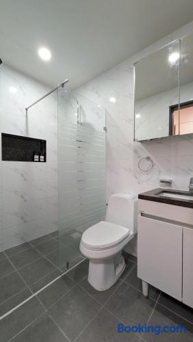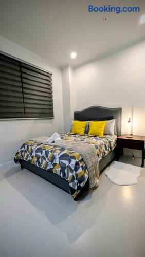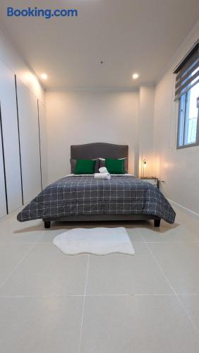 Welcome to our premium 3-bedroom, 3-bathroom condo in Clark Freeport Zone. This spacious unit features high ceilings, a bright open living area, private balcony, full kitchen, and dining space—perfect for families, groups, or business travelers. Enjoy modern comfort in a secure location just minutes from Clark International Airport, golf courses, restaurants, and entertainment. A stylish and relaxing home base for your Clark stay.
